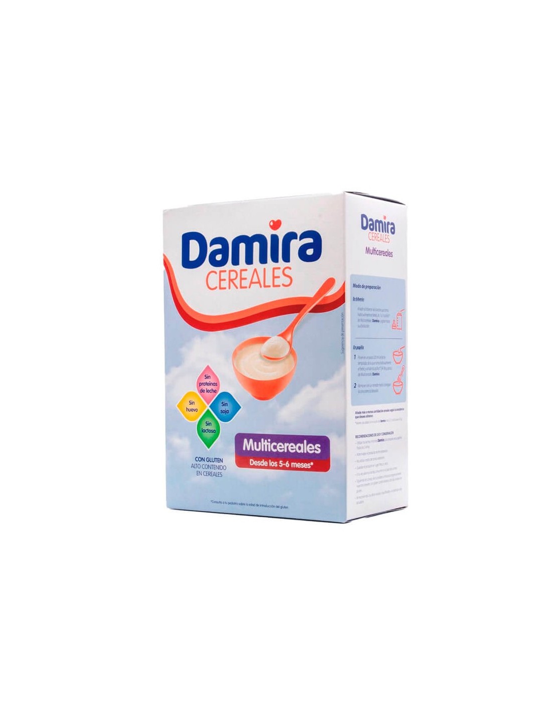 Damira Multicereales 600gr es un preparado alimenticio de alto valor nutritivo para bebés desde los 5-6 meses de vida. Esta solución alimentaria está concebida para que los más pequeños empiecen a disfrutar de los beneficios y la energía de los cereales como el trigo, el maíz, el arroz y demás cereales de su composición. Damira Multicereales, que se presenta en formato de 600 gramos, es rica en calcio y vitaminas D, necesarios para el normal crecimiento y desarrollo de los huesos en los niños. Su fórmula también es rica en hierro que contribuye al normal desarrollo cognitivo de los niños.