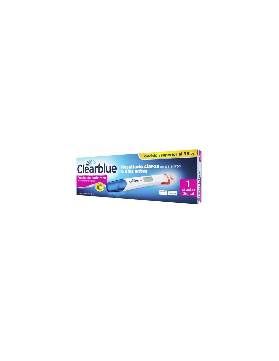 Clearblue prueba de embarazo ultratemprana digital es la prueba de embarazo digital más sensible. Detecta la hormona del embarazo (hCG) con una sensibilidad de 10 mUI/ml.