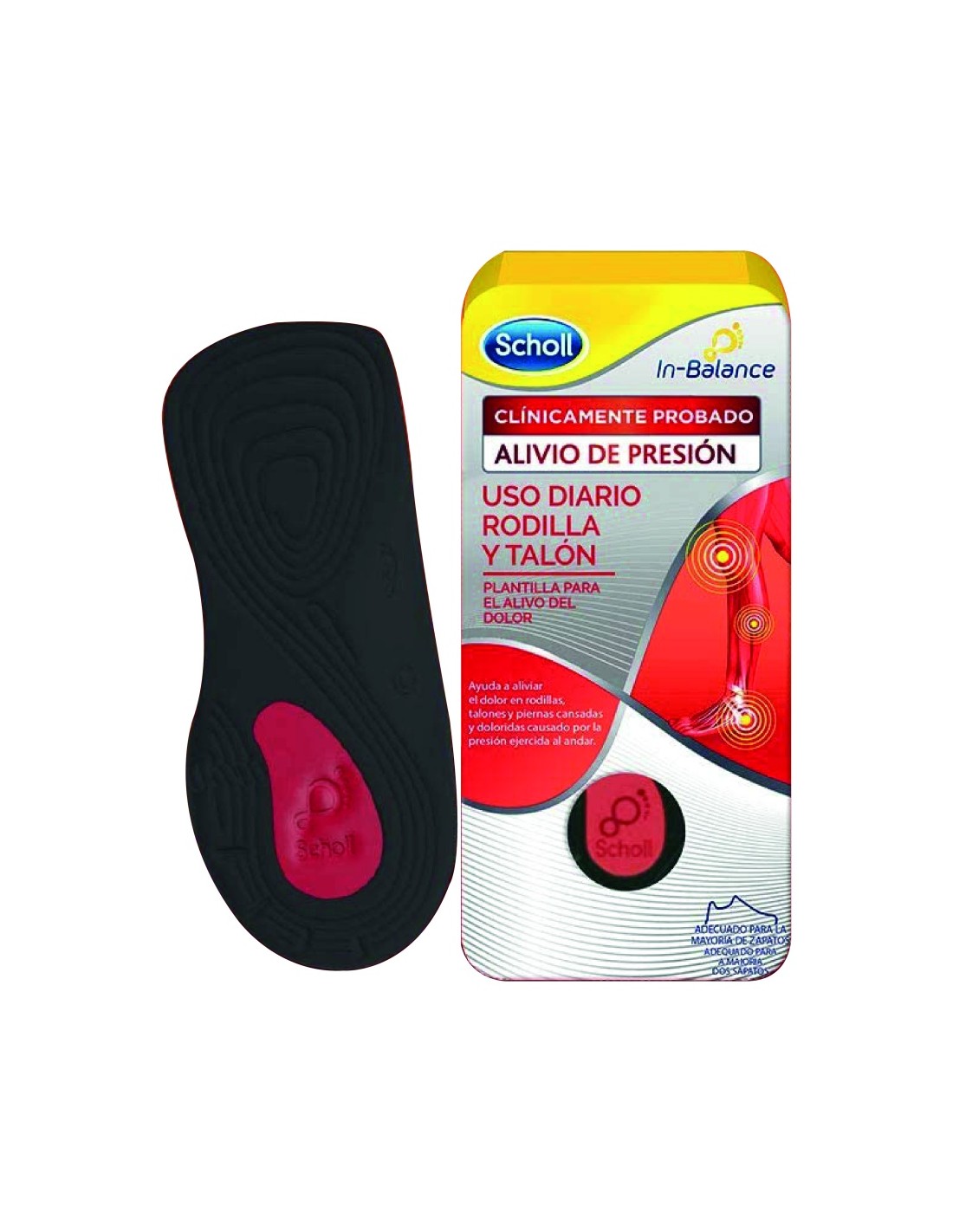 La Plantilla In-Balance Rodilla y Talón Talla L de Scholl, es unisex, está indicada para personas con dolores en rodillas y talones. La medida L comprende la talla: 42,5 a 45.