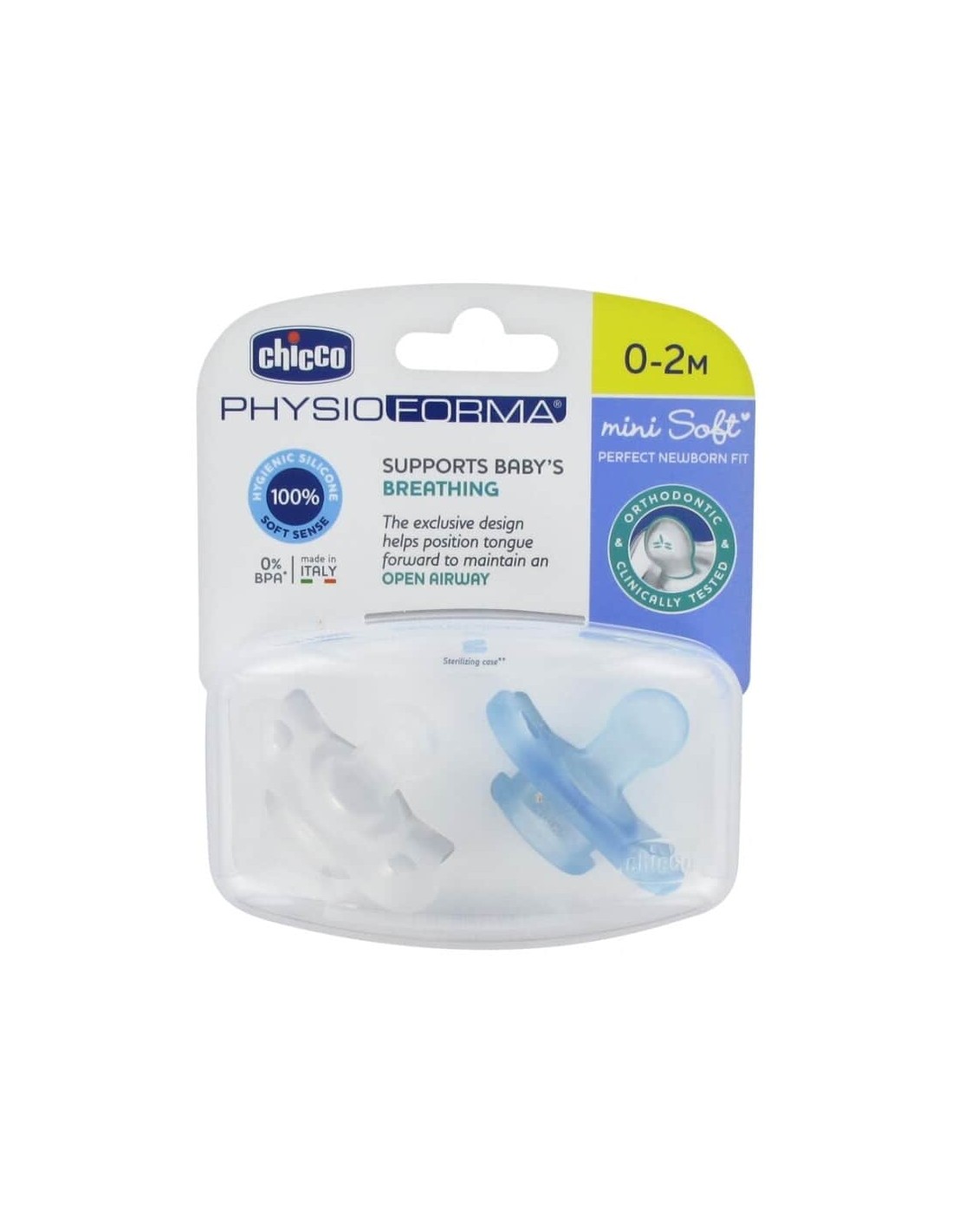 Chicco Pack 2 Chupetes AZUL Physio Minisoft Azul-Transparente 0-2 Meses