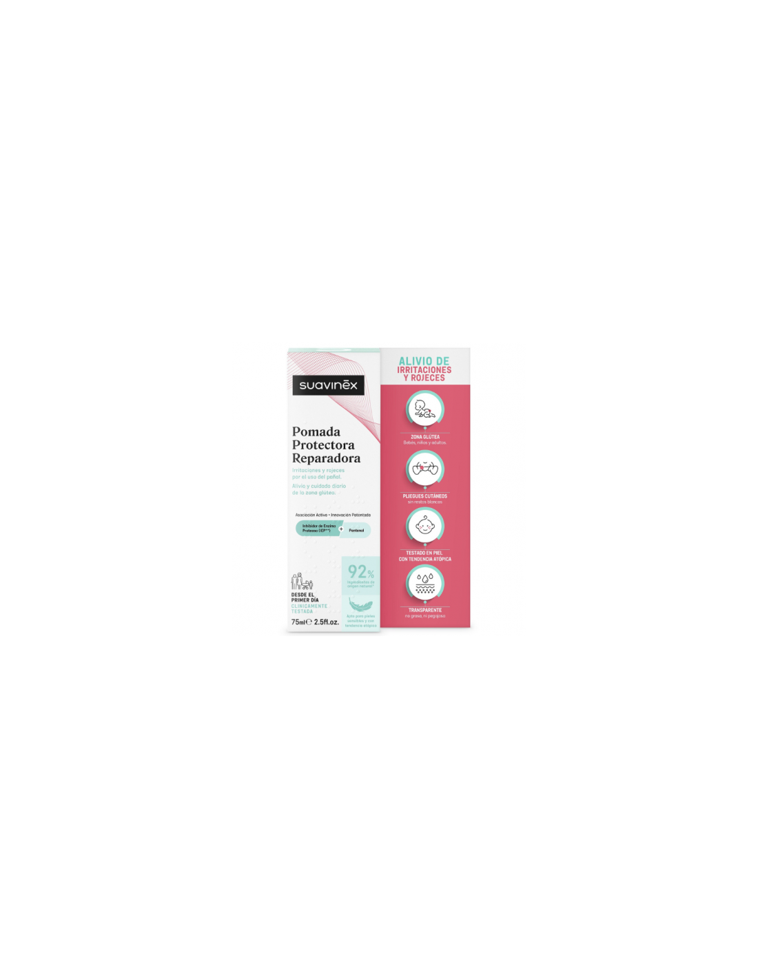 La Pomada Protectora Reparadora Suavinex está formulada para el cuidado de la piel irritada por el uso del pañal. Adecuada para la zona glútea del bebé, niño y adultos. También para pliegues cutáneos.
