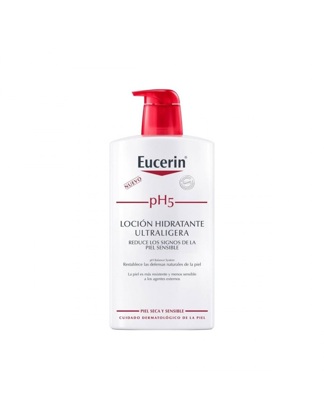Salud y belleza Cremas Eucerin Loción ultra ph5 1 L+400 ml Eucerin pH5 Loción Enriquecida es un producto hidratante corporal suave. Se ha formulado especialmente para mejorar la resistencia y reducir la sensibilidad de la piel corporal sensible. El sistema de pH Balance System de Eucerin contiene tampón citrato pH5 que restablece y estimula el pH óptimo de la piel. La loción también incluye dexpantenol, un ingrediente activo conocido por sus propiedades regenerativas. Con textura ultraligera, permitiendo que se absorba rápidamente. El uso diario permite disfrutar de una protección duradera, suaviza la piel y mejora su condición con el tiempo. Apta para bebés y niños. Aplique a diario tras la ducha o el baño. Masajee con suavidad hasta su completa absorción.