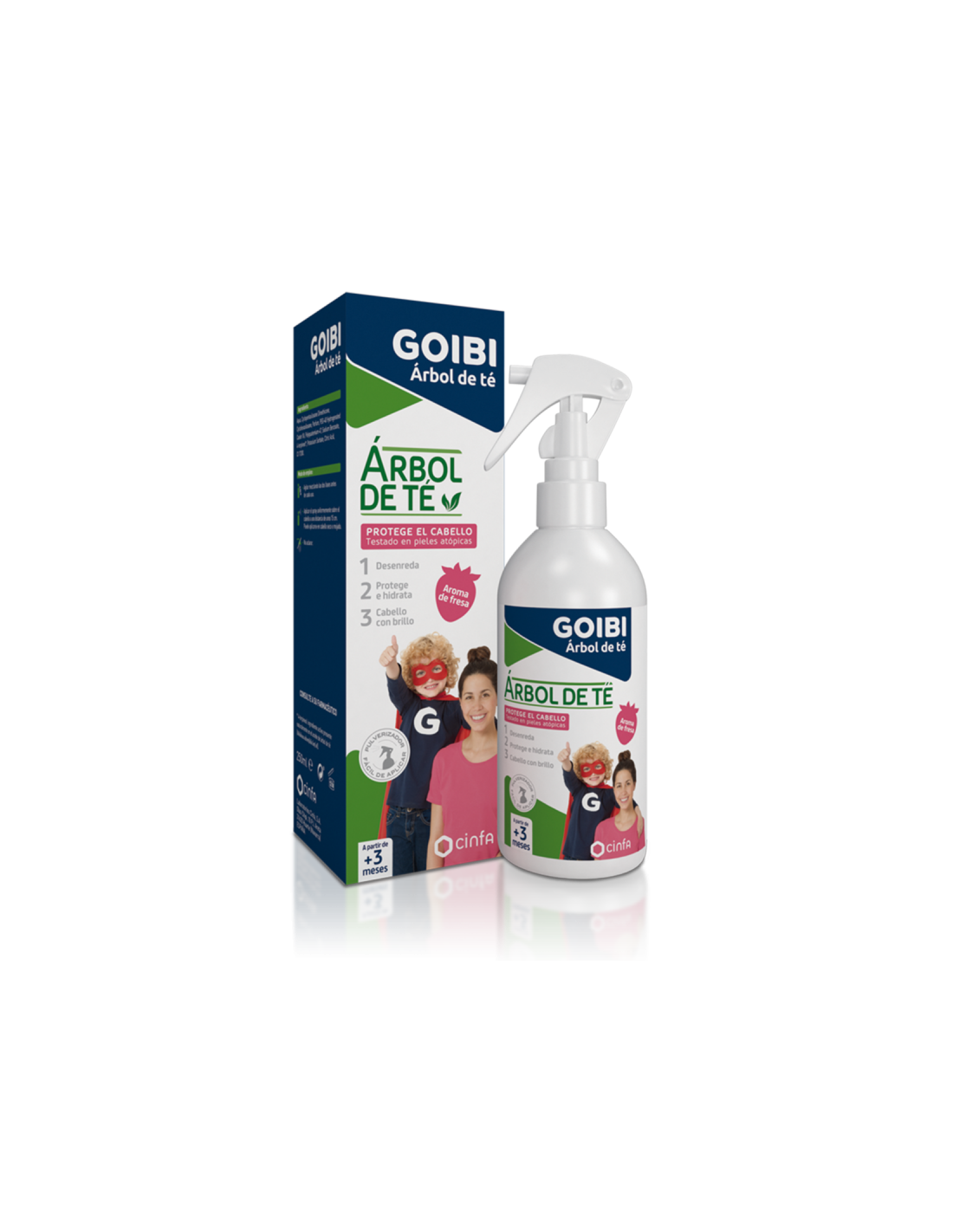 La cuidada fórmula de Goibi árbol del té aroma fresa, contiene una mezcla de aceite de árbol de té estandarizado con 4-terpineol (molécula activa del arbol del té), mezcla de siliconas acondicionantes que aseguran el cuidado y protección que necesita el cabello de los más pequeños.