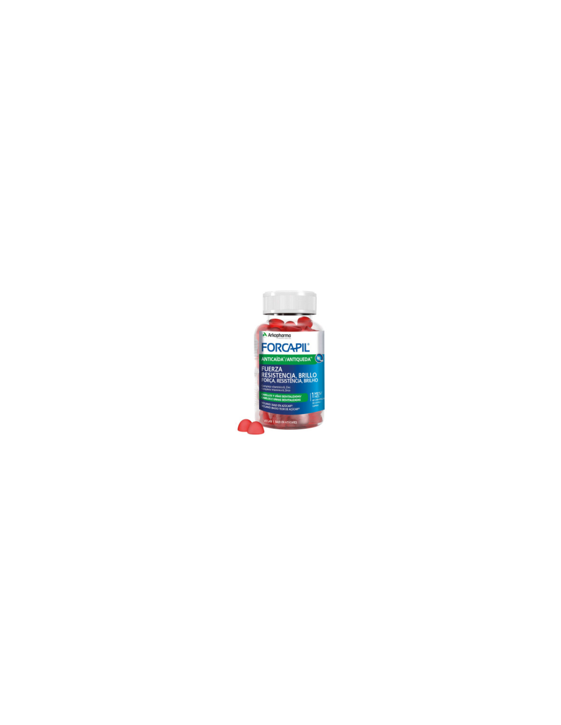 Forcapil anticaída fuerza, resistencia y brillo es un complemento alimenticio en forma de caramelos de goma.