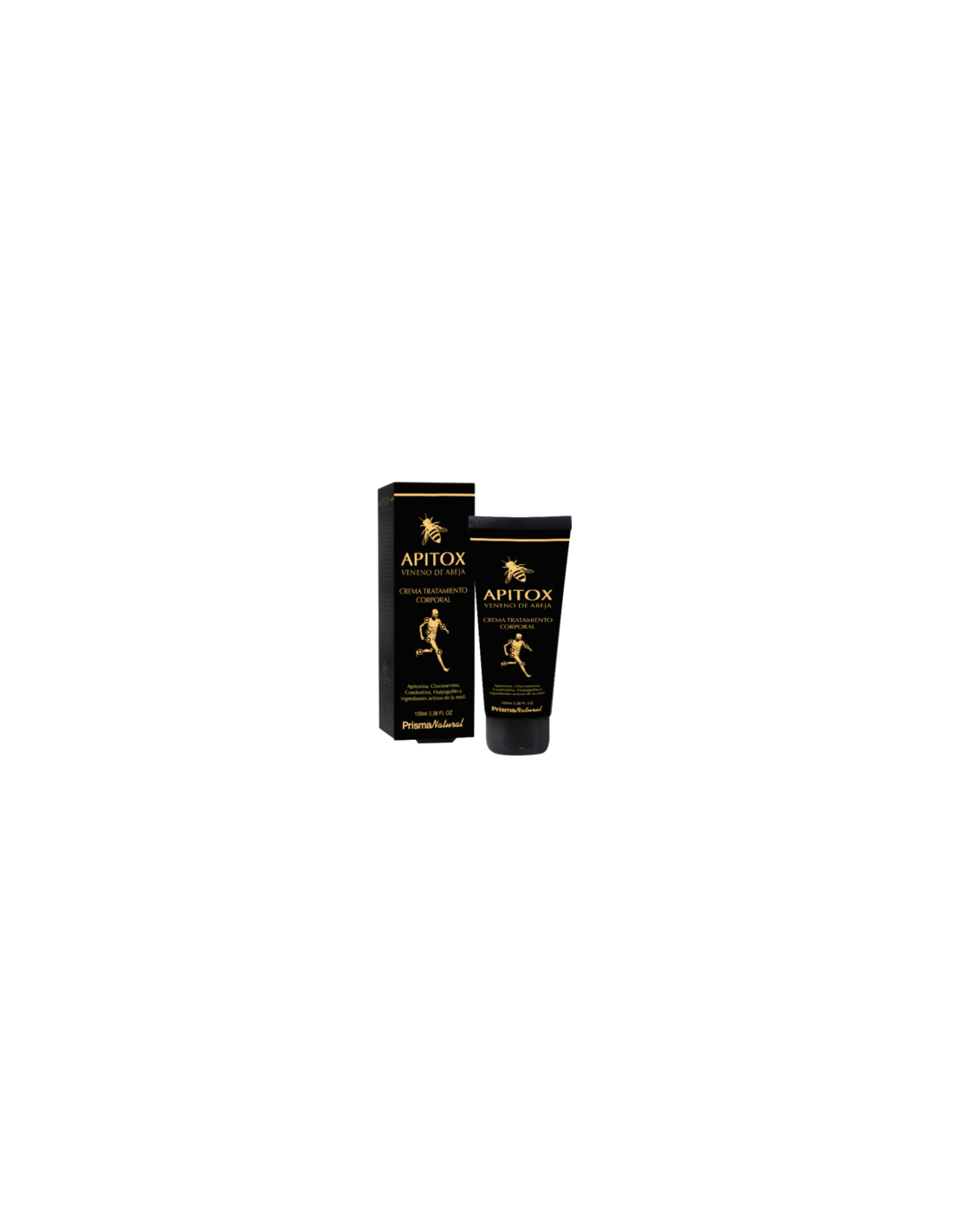 Apitox Crema corporal, es una crema de efecto frío, textura liviana y rápida absorción, basada en ingredientes derivados de la abeja, como el extracto de miel y el veneno de abeja (apitoxina) además de otros ingredientes como el mentol, extracto de harpagofito, salicilato de metilo, glucosamina y sulfato de condroitina. Ayuda a relajar las zonas tensas del cuerpo, indicado para usar antes y después del ejercicio físico.