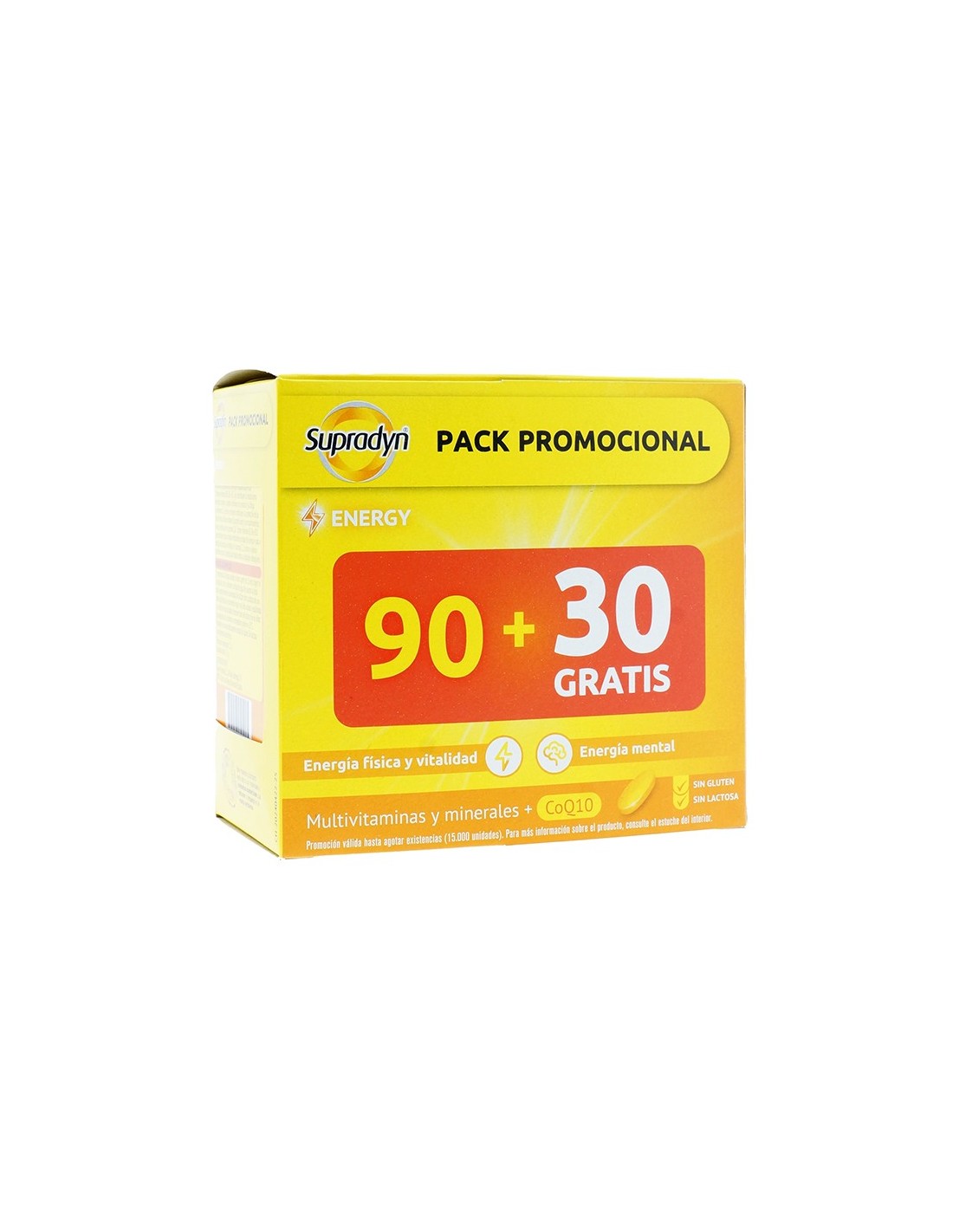 Supradyn Energy es un complemento alimenticio en formato de comprimidos diseñado para ayudar a mantener el nivel de energía y reducir la fatiga. Con una combinación de vitaminas, minerales y coenzima Q10, este producto está formulado para apoyar el rendimiento físico y mental en momentos de alta exigencia. Ideal para personas con un ritmo de vida activo, Supradyn Energy contribuye a reforzar el sistema inmunológico y mejorar la vitalidad diaria.
