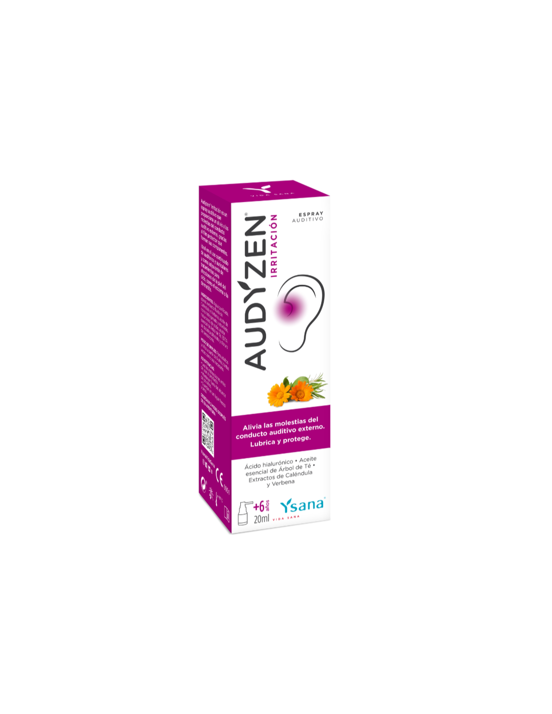 Audyzen Irritación Itch Relief Spray 20 ml es un tratamiento especializado que ayuda a calmar el picor y la irritación en el oído, aportando una sensación de frescura y confort. Su fórmula dermatológicamente testada combina ingredientes con propiedades antiinflamatorias e hidratantes que contribuyen a restaurar el equilibrio natural de la piel del canal auditivo.