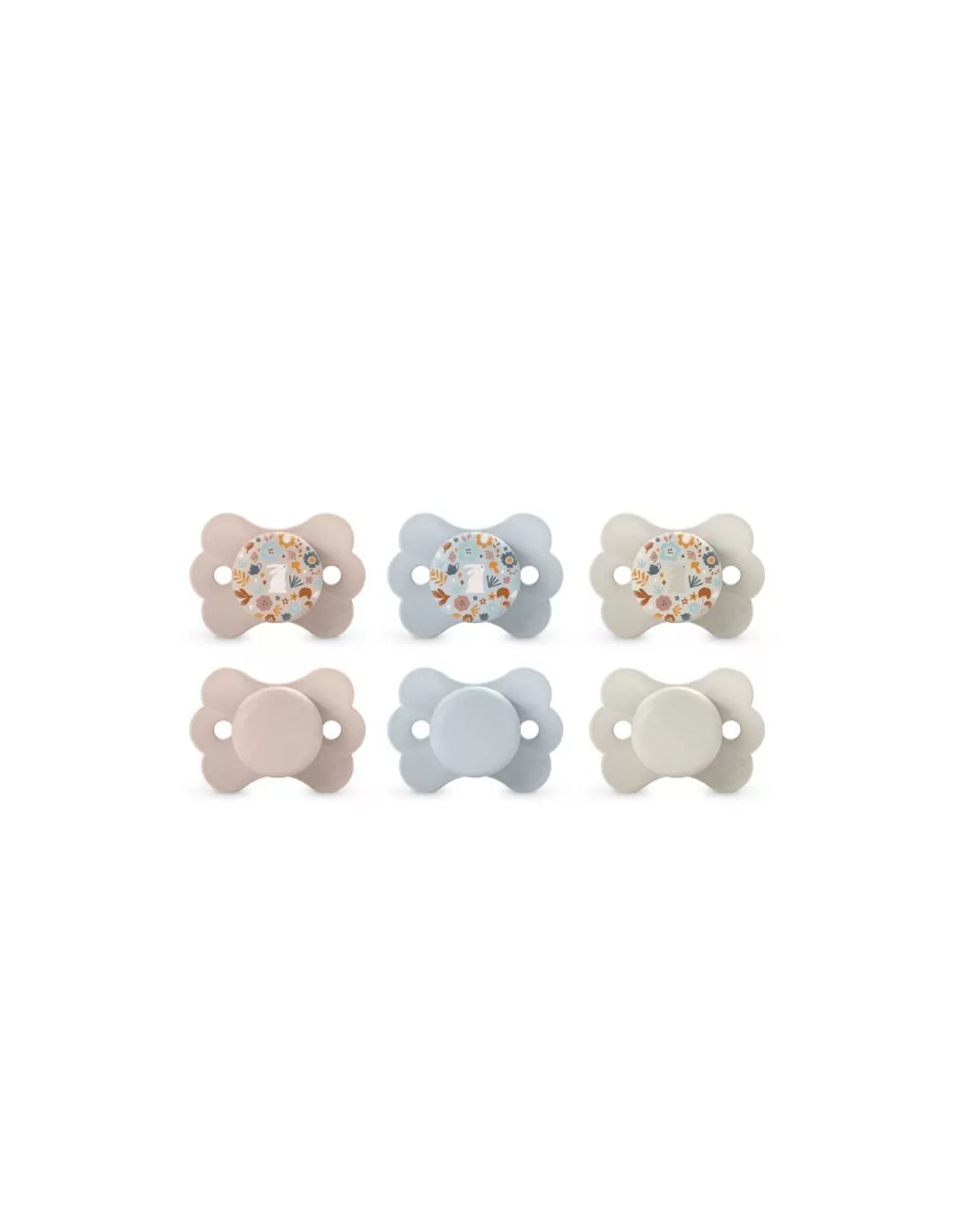 Chupetes con tetina fisiológica SX Pro silicona para 0-6 meses. Pensada para no invadir la cavidad oral y proporcionar al bebé la misma sensación que experimenta en su estado natural/fisiológico cuando no lleva chupete. Diseñado para respetar el desarrollo bucodental del bebé.