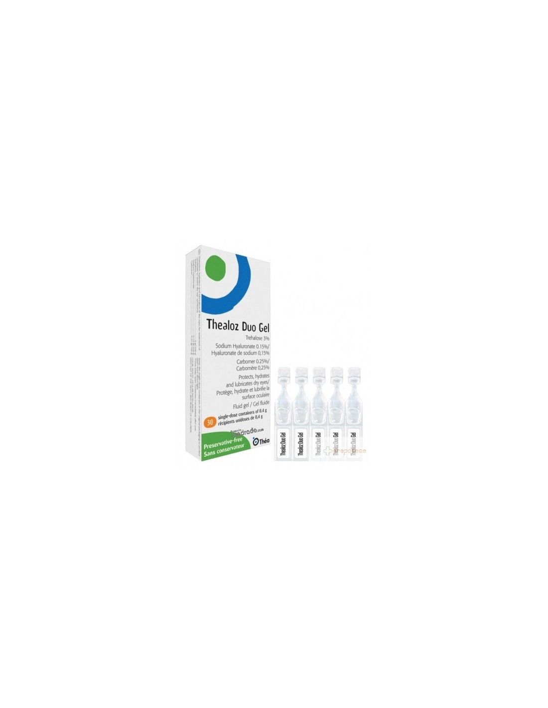 Gel fluido para el alivio de los síntomas y signos del ojo seco moderado a grave durante el día y la noche. Thealoz Duo Gel Fluido es una solución integral para la sequedad ocular moderada o severa. Este gel fluido proporciona una protección avanzada, hidratación profunda y una lubricación óptima para aliviar los síntomas del ojo seco y restaurar su confort. Formulado con ácido hialurónico, este gel fluido hidrata la superficie ocular, calma la irritación y mejora la calidad de la lágrima, prolongando su permanencia en el ojo. Además, contribuye a la regeneración de la córnea y favorece la cicatrización de pequeñas lesiones, promoviendo así una recuperación más rápida. La trehalosa, un disacárido natural, complementa esta fórmula única protegiendo tus ojos contra el daño ocasionado por la sequedad. Inspirada en la naturaleza, esta molécula actúa como un escudo, ayudando a preservar la salud ocular incluso en condiciones adversas. Experimenta un alivio duradero y una mayor comodidad con Thealoz Duo Gel Fluido. Tu solución confiable para mantener tus ojos frescos, hidratados y protegidos, día tras día.