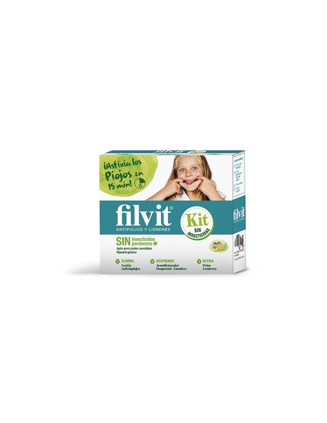 Filvit Kit Sin Insecticidas Con Loción Asfixiapiojos+Acondicionador Desprendedor Y Peina Lendrera
