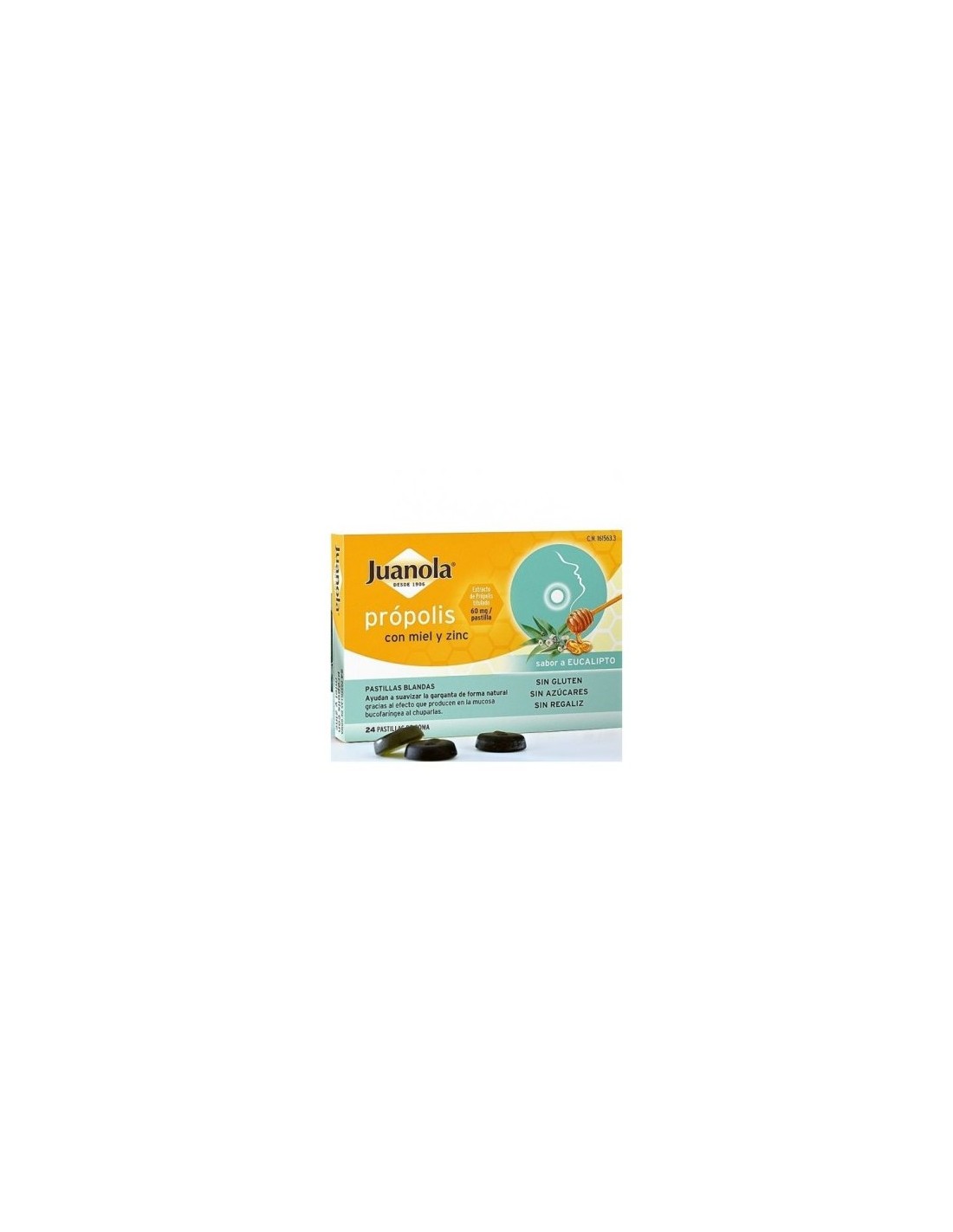 JUANOLA PROPOLIS MIEL Y ZINC 24 PASTILLAS DE GOMA SABOR EUCALIPTO