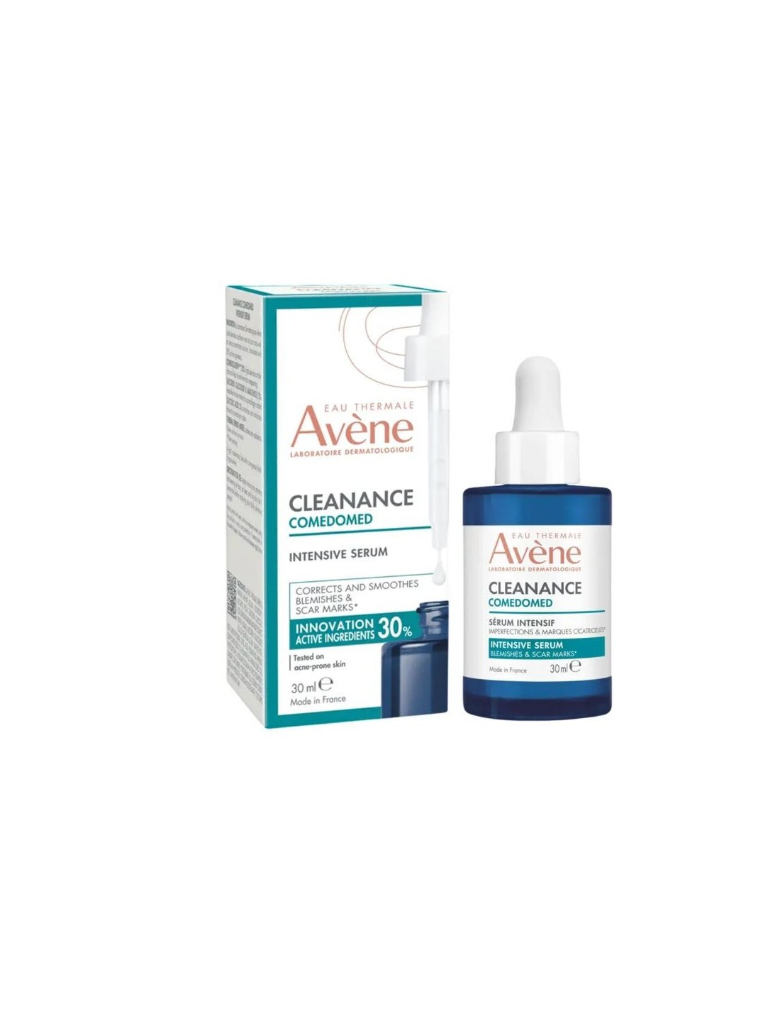 Avène Cleanance Comedomed Sérum Intensivo es un tratamiento facial de alta eficacia especialmente formulado para pieles con tendencia acneica en adultos y adolescentes a partir de 12 años. Fabricado en Francia, este sérum innovador se inspira en la precisión de las tecnologías láser para actuar de forma específica sobre las imperfecciones, las marcas persistentes y las cicatrices de acné, ofreciendo resultados visibles desde las primeras aplicaciones.