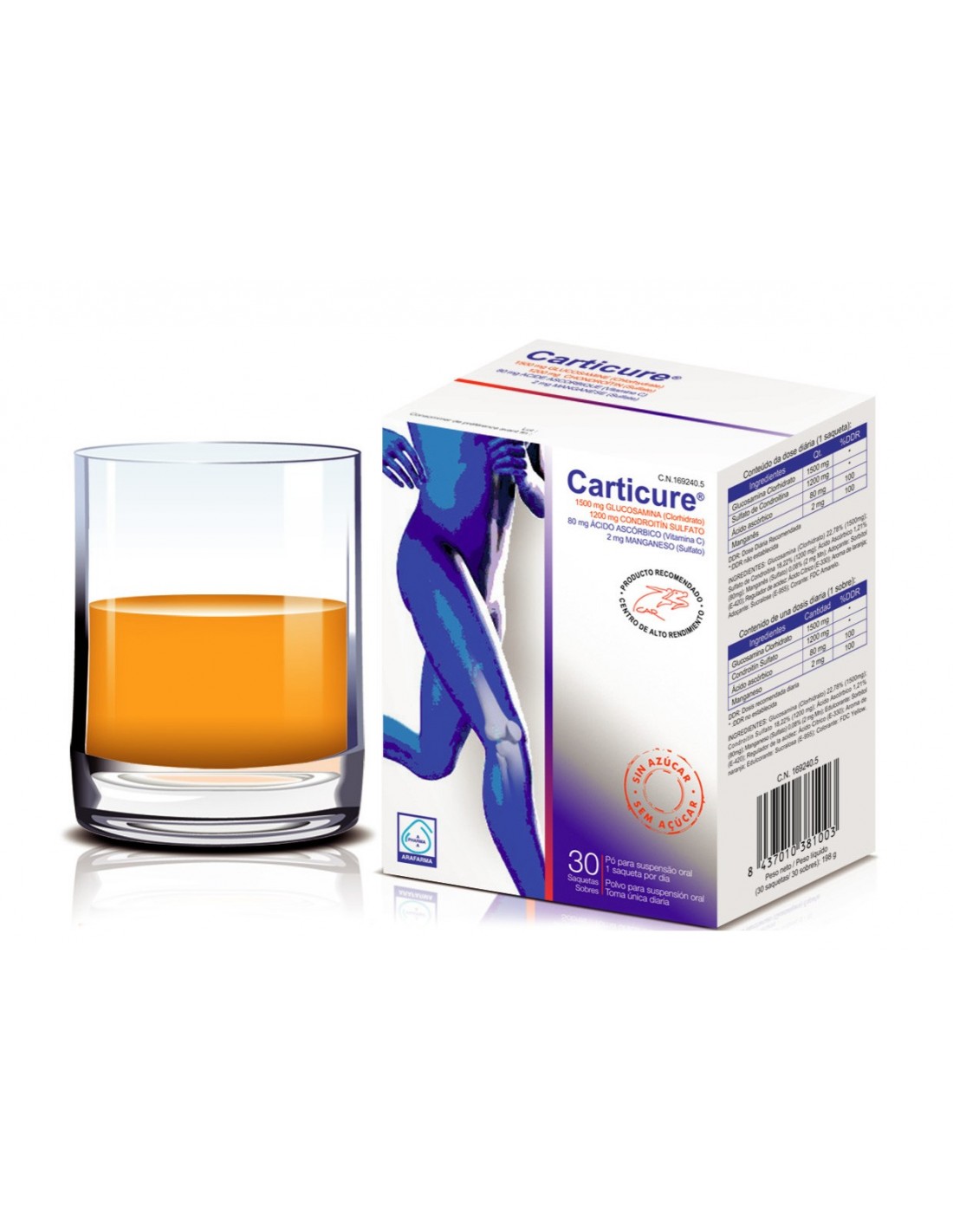Suplemento alimenticio para el funcionamiento normal de los huesos. Carticure es ideal para deportistas, personas que realizan ejercicio físico diario, personas de edad avanzada, personas diversas...