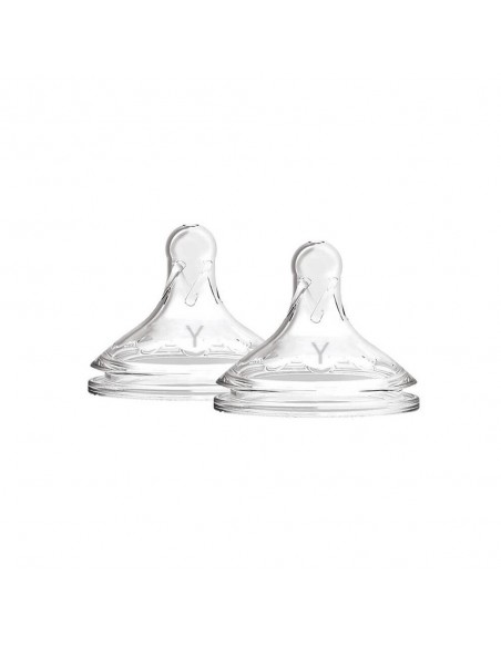Tetina de silicona médica Corte en Y. Biberón anticólio Dr. Brown's Formato Boca Ancha Modelo Options+. Tetina ergonómica, similar al pecho materno para una alimentación más natural. 93% de aceptación entre los bebés.