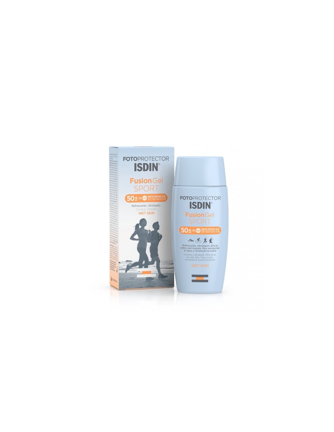 Fotoprotector ISDIN® Fusion gel sport SPF50 es una loción solar especialmente preparada para las personas más activas que exponen su piel al sol durante largas horas y garantizando una protección refrescante. Este gel presenta una textura de fácil aplicación y absorción, incluso en piel mojada gracias a su tecnología Wet Skin, siendo ideal su uso en hombres, zonas pilosas y cuero cabelludo.