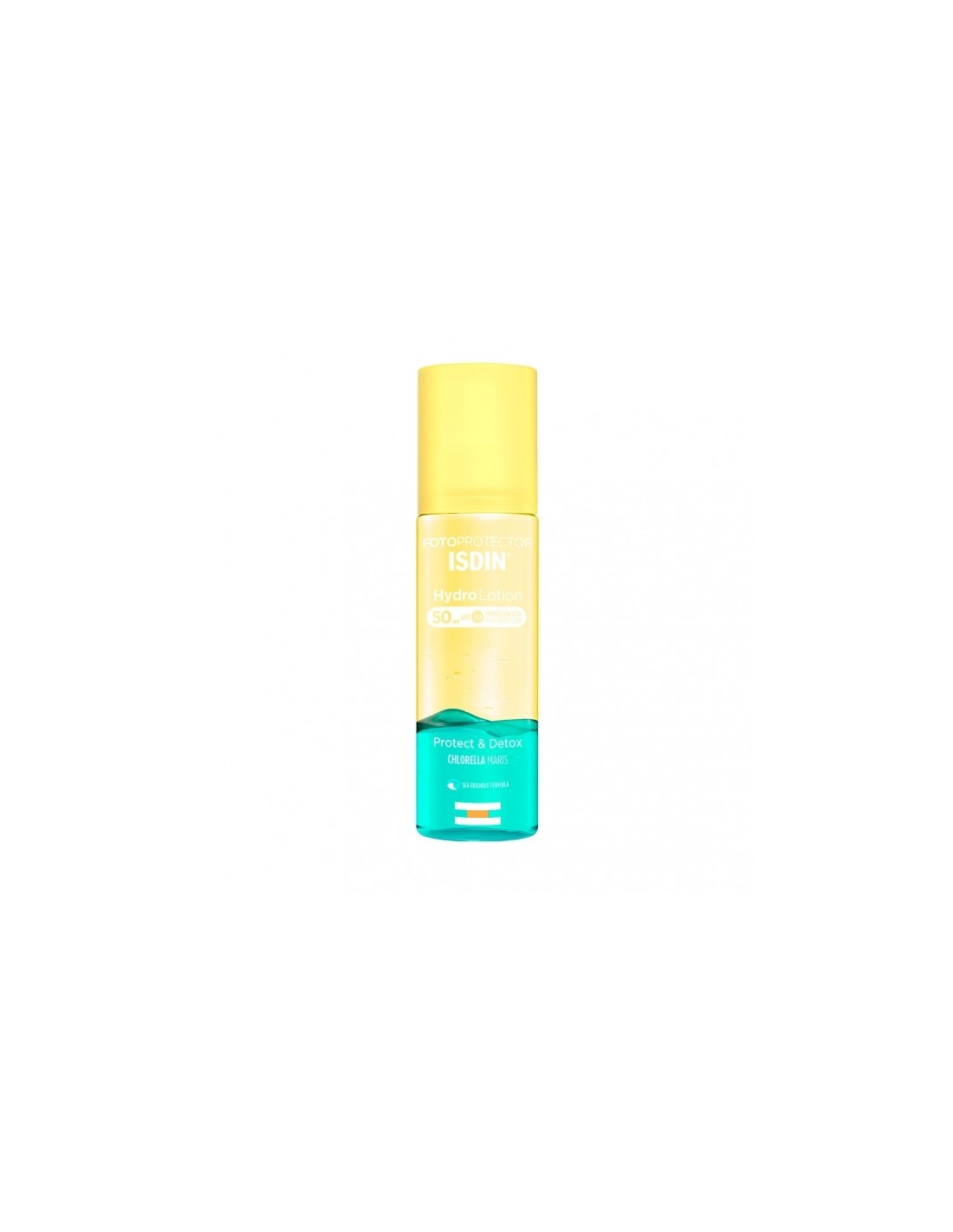Fotoprotector Isdin Hydro Lotion Doble Acción SPF +50 es una loción oleoacuosa bifásica de doble acción que protege y desarrolla una acción detox. Esta loción ofrece muy alta protección UVA UVB SPF50. Además, gracias a su formulación con Chlorella Maris detoxifica y revitaliza la piel del daño inducido por la radiación solar gracias a su acción antioxidante. El fotoprotector Isdin Hydro de doble acción proporciona a la piel un aspecto más flexible y elástico y más luminoso. Su fórmula es Sea Friendly.